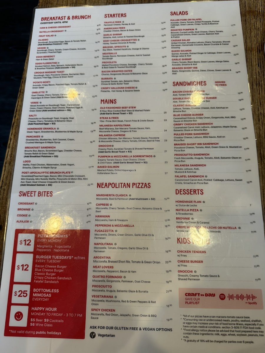 “ Parking nearby was metered, for 2 hours, $7. Easy to find among a lot of other restaurants and shops in a pedestrian avenue. We had a good experience as vegetarian, I’m always on the lookout for spots that offer more than just a basic cheese pizza—and Craft definitely delivers. Their vegetarian options are fresh, flavorful, and creative. The atmosphere was fun and laid-back. If you go during happy hour they have a few choices for wine, beer, etc. and great for families early., We were lucky to be served by Juan V., who was an absolute gem. Super friendly, attentive, and made us feel right at home from start to finish. He even made great suggestions and checked in just the right moments. Thank you! ”